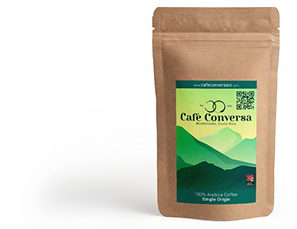 Café Conversa, un café dulcemente equilibrado con ligeros aromas a naranja, miel y un toque de chocolate. Acidez delicada y frutal con una sensación de sedosidad en la boca.